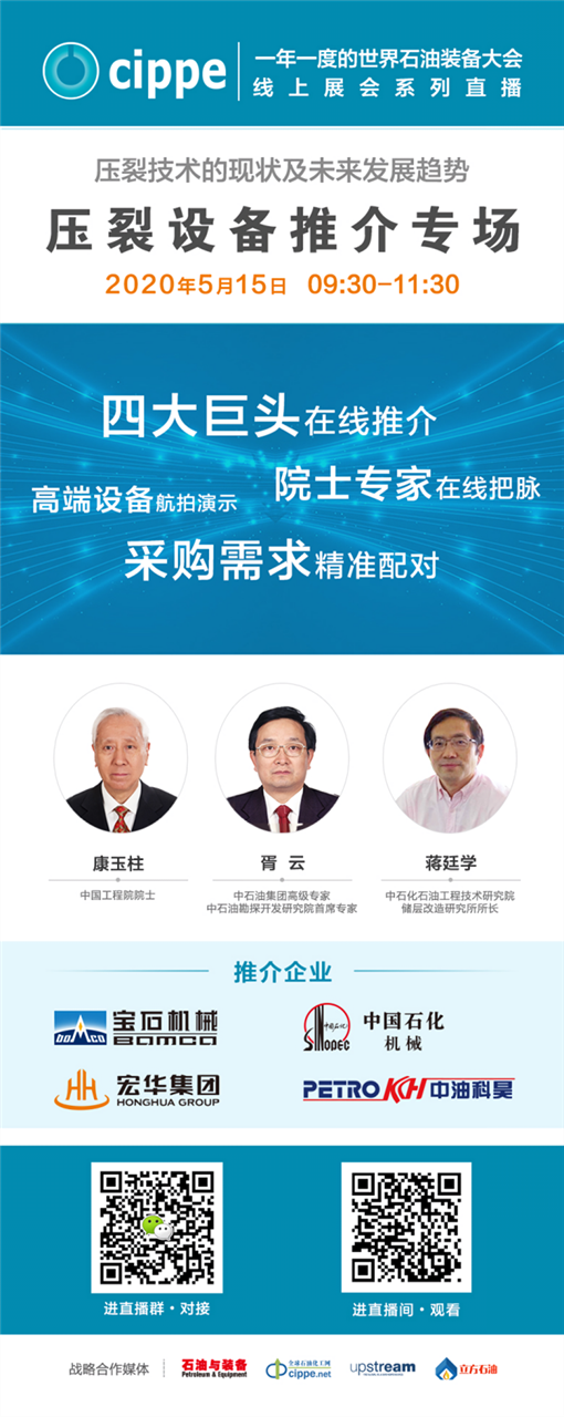 cippe組委會也邀請了中國工程院院士康玉柱,中石油集團高級專家、中石油勘探開發(fā)研究院首席專家胥云,中石化石油工程技術研究院儲層改造研究所所長蔣廷學等專家蒞臨直播間,并就“壓裂技術的現狀及未來發(fā)展趨勢”這一主題進行市場分析。歡迎您屆時進入直播間觀看直播。