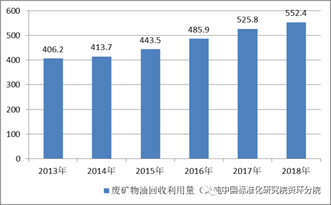 同時(shí),我國(guó)廢礦物油的回收利用量也逐年攀升。2013年我國(guó)廢礦物油行業(yè)回收利用量約406.2萬(wàn)噸,到2018年達(dá)到了552.4萬(wàn)噸。