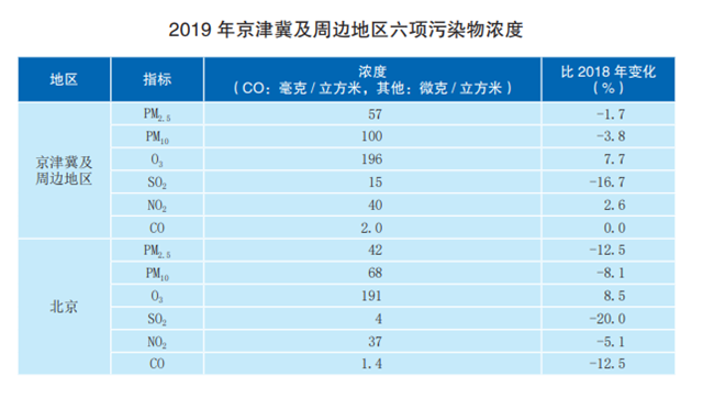 北京優(yōu)良天數(shù)比例為65.8%。無嚴(yán)重污染,出現(xiàn)重度污染4天,重度及以上污染天數(shù)比2018年減少10天。