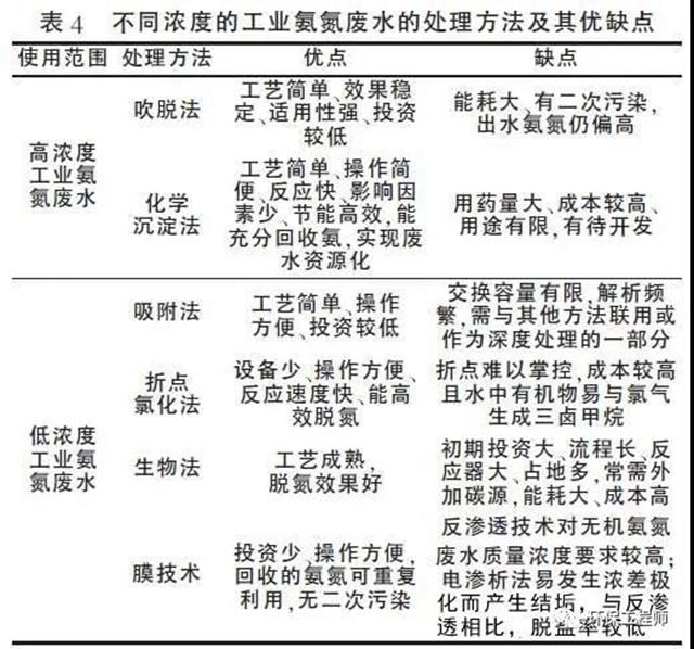 不同氨氮廢水處理方法優(yōu)缺點(diǎn)比較見表4。