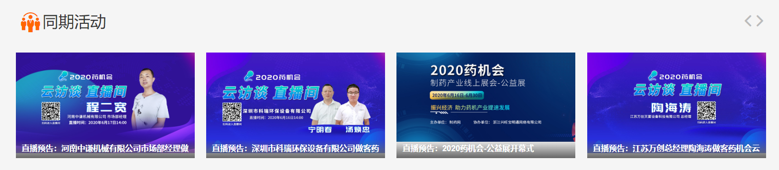 在線展會(huì)。打破時(shí)間和空間限制,低成本,開展期間,展商可24h不限時(shí)段發(fā)布直播信息,觀眾亦可隨時(shí)在線看展。(←點(diǎn)擊進(jìn)入2020藥機(jī)會(huì)展館)