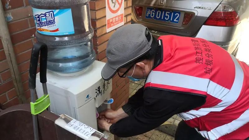 鳳六新苑垃圾投放點(diǎn)旁沒有條件裝洗手臺盆,小區(qū)物業(yè)經(jīng)理劉昌澄看了一眼閑置的飲水機(jī),“就你了!”居民破袋時如果臟了手,就翻起垃圾桶旁飲水機(jī)上的把手,涓涓細(xì)流很快沖走了他們的煩惱。