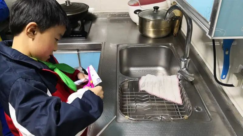 小磊已經(jīng)熟練掌握酸奶盒的分類步驟:剪開酸奶盒,倒掉剩余的酸奶;用水沖洗酸奶盒,晾干;把吸管扔進(jìn)干垃圾桶,洗凈晾干的酸奶盒扔進(jìn)可回收物桶