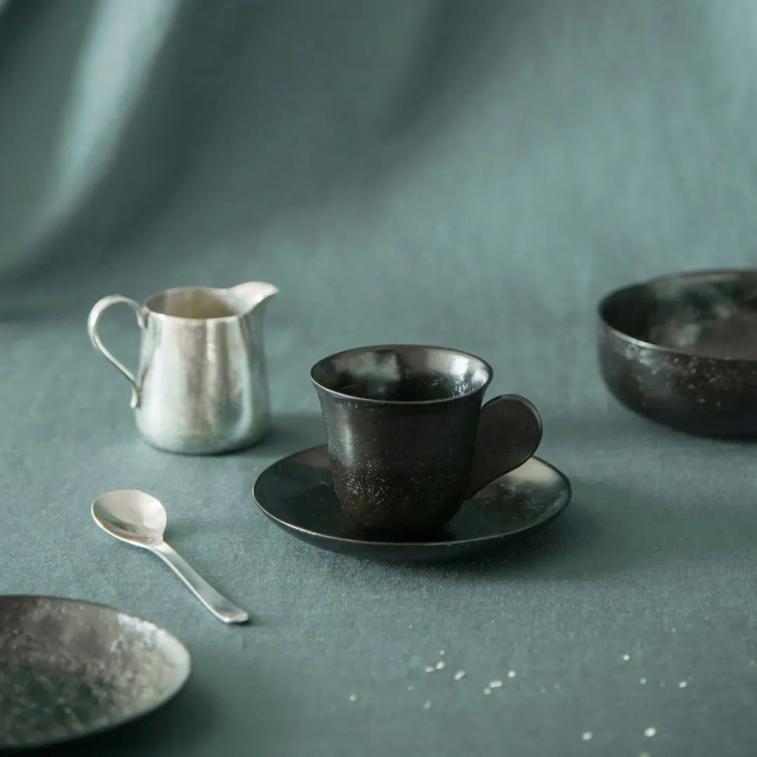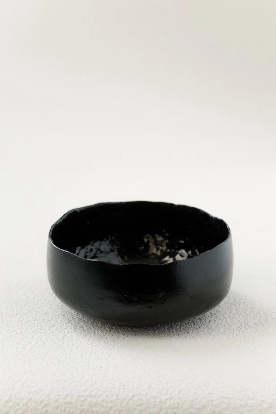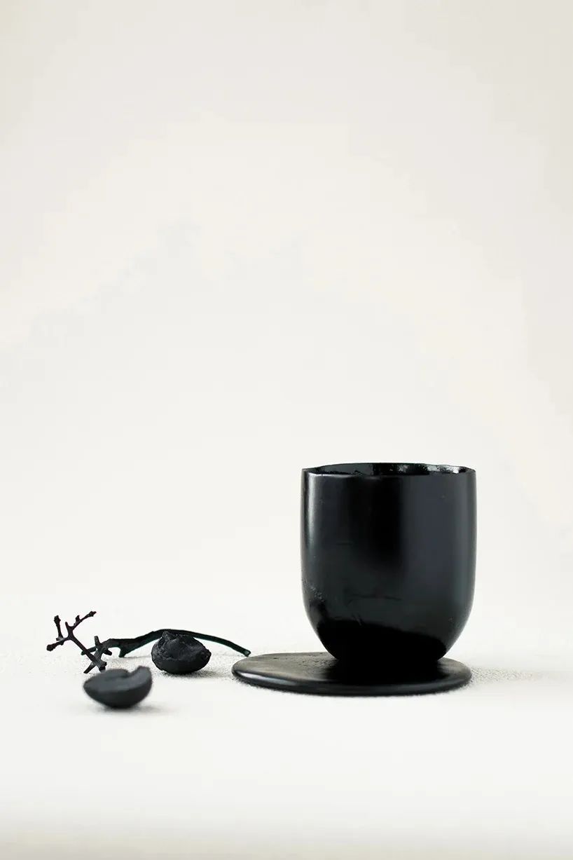 器皿的黑色本體,來自食物碳化后的本真色彩,這背后也別有一番深意。Araki篤信萬物有靈,把食物碳化的過程,仿佛是為那些被拋棄的生命舉行一場(chǎng)莊嚴(yán)儀式。垃圾焚化后,轉(zhuǎn)世成為美麗的造物,也是這個(gè)系列名字“Anima”(靈魂)的來源。