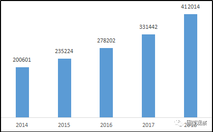 圖22014-2018年全國焚燒垃圾處理能力(單位:噸/日)