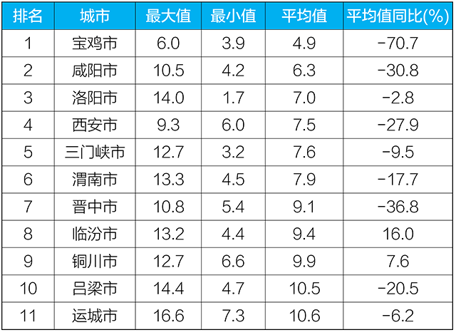 2020年5月汾渭平原11城市降塵監(jiān)測結果