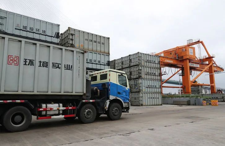 在上海城投環(huán)境集團(tuán)徐浦基地,一排排白色的集裝箱層層堆疊,形成一道獨(dú)特的“垃圾箱墻”。這些集裝箱專箱專用、分類運(yùn)輸,每個可容納12噸左右的生活垃圾。每天有約3000噸至3500噸的生活垃圾,經(jīng)過黃浦江、大治河被轉(zhuǎn)運(yùn)到末端的老港基地處理。