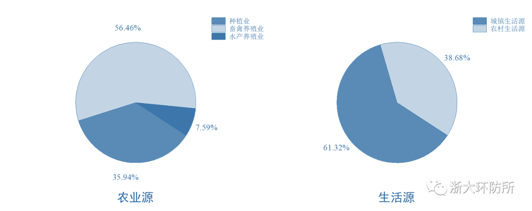 工業(yè)源占比大幅下降,農(nóng)業(yè)源、生活源依然是主要排放源。