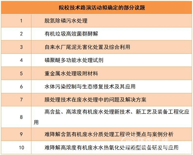 意識到這一點,為使業(yè)內(nèi)人士明確當(dāng)下廢水零排放相關(guān)技術(shù)的研究方向,2020院校技術(shù)路演活動擬定了10大議題,將圍繞廢水零排放進行了廣泛的交流和探討,為水處理高質(zhì)量轉(zhuǎn)型升級創(chuàng)造有利條件。具體如下:
