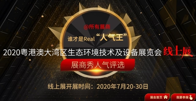 截至2020年7月30日閉展,只要你是“2020粵港澳大灣區(qū)生態(tài)環(huán)境技術(shù)及設(shè)備展覽會—線上展”參展企業(yè)均可參與“展商秀人氣評選”活動,評選方式、參與方式、“人氣王”福利,趕快進(jìn)入頁面(←點(diǎn)擊進(jìn)入在線展館)了解吧。