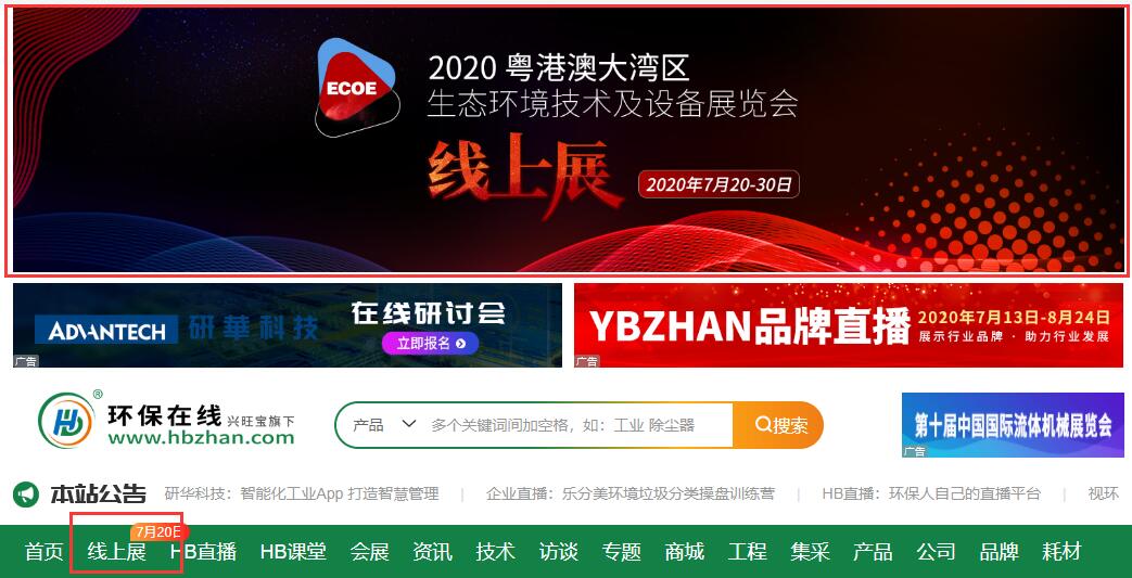 7月20日,打破當(dāng)下環(huán)保展會“空窗期”的【2020粵港澳大灣區(qū)生態(tài)環(huán)境技術(shù)及設(shè)備展覽會—線上展】(←點(diǎn)擊進(jìn)入在線展館)就要正式開展了!小伙伴們,都準(zhǔn)備好了嗎?