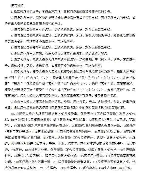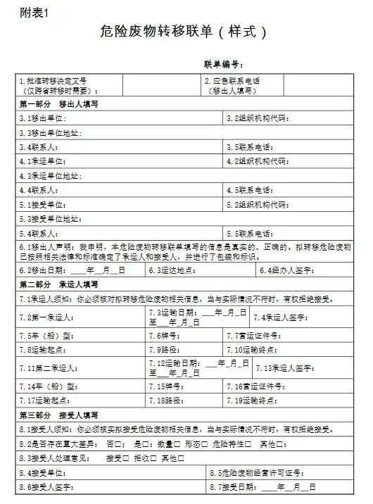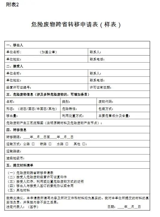(一)危險(xiǎn)廢物跨省轉(zhuǎn)移申請(qǐng)表,格式見附表2。