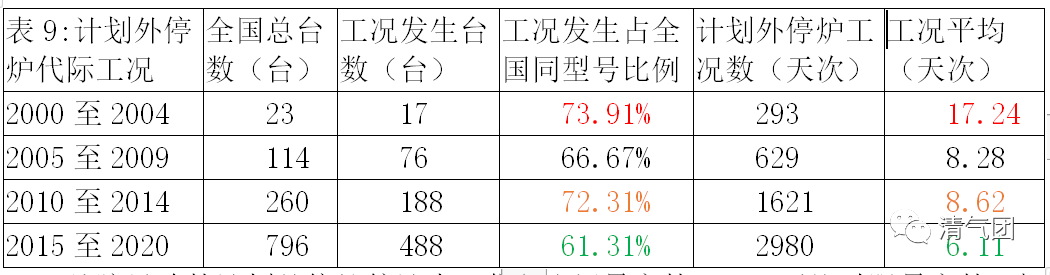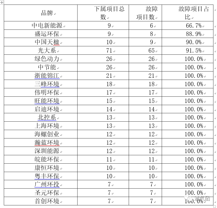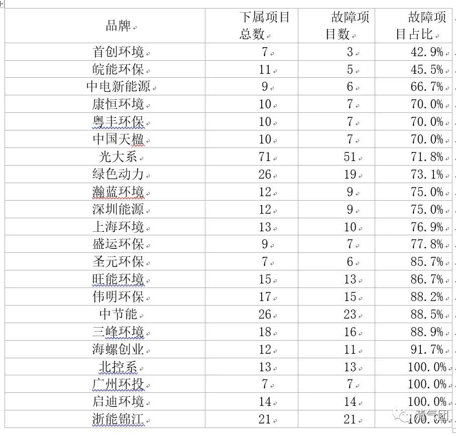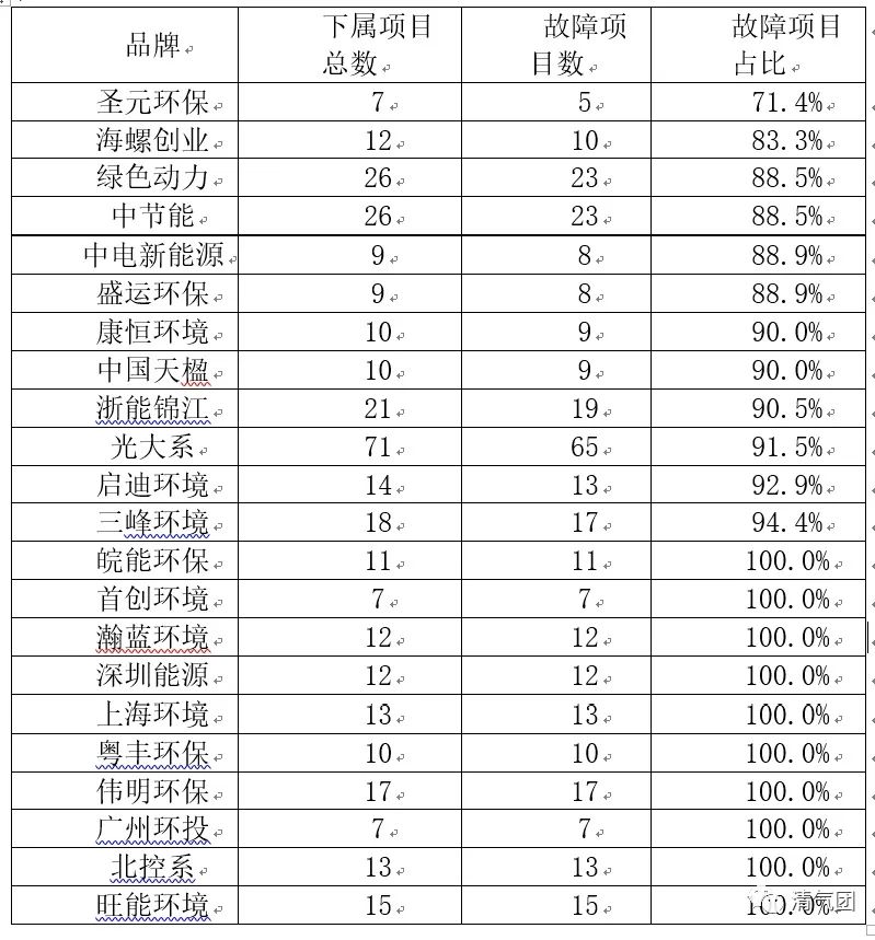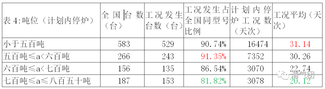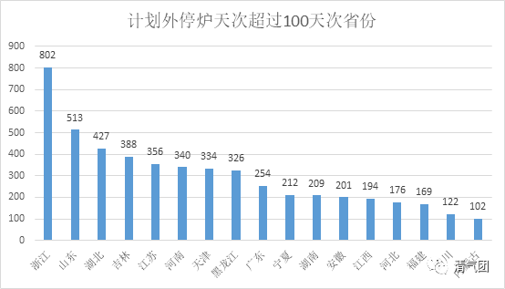 生態(tài)環(huán)境部下轄生活垃圾焚燒發(fā)電廠自動監(jiān)測數(shù)據(jù)公開平臺中,對所有垃圾焚燒廠的每一臺焚燒爐,是否檢修,是否出現(xiàn)重大故障等異常工況,都有了明確的公開要求,如果發(fā)生相關(guān)工況,每個焚燒企業(yè)必須對所轄的每臺爐,每天必須公示一次。減少垃圾焚燒廠的檢修和故障,是每個垃圾焚燒企業(yè)管理者和地方環(huán)衛(wèi)主管單位都極力想實現(xiàn)的主要運(yùn)營和管理目標(biāo)。對于環(huán)衛(wèi)主管部門來說,檢修多,說明停爐多,這會影響城市生活垃圾的正常處置效率,影響環(huán)境衛(wèi)生工作的正常開展;故障多,有可能造成垃圾焚燒煙氣排放的穩(wěn)定性,煙氣超標(biāo)排放的幾率可能上升。對于垃圾焚燒廠來說,故障檢修多,帶來的企業(yè)運(yùn)營成本上升,臭氣污染風(fēng)險增大,垃圾處理費(fèi)收入和發(fā)電收入下降,是很不劃算的事情。所以,相關(guān)情況的公示,也有利于群眾協(xié)助政府,更好的對垃圾焚燒廠進(jìn)行監(jiān)督,也有利于政府部門和相關(guān)綠色金融機(jī)構(gòu),更好的判斷垃圾焚燒企業(yè)的基本運(yùn)營能力。同時,根據(jù)住建部2010年發(fā)布的《生活垃圾處理技術(shù)指南》要求,一個垃圾焚燒項目企業(yè)的運(yùn)營能力和運(yùn)維水平高低,可以用一個基本的指標(biāo)來衡量,就是單臺焚燒爐的年運(yùn)營小時數(shù),是否能夠達(dá)到八千小時,折合成天數(shù),為333天,這也是住建部相關(guān)技術(shù)指南對垃圾焚燒運(yùn)維能力的基本要求。以一年365天計算,一臺垃圾焚燒爐年運(yùn)行期間,有768小時,折合32天,可以處于空白運(yùn)營期,也是留給垃圾焚燒爐進(jìn)行各種檢修的空檔時間。如果一個垃圾焚燒企業(yè)運(yùn)營能力強(qiáng),設(shè)備選型合理,運(yùn)維日常操作規(guī)范和設(shè)備保養(yǎng)到位,就會減少故障發(fā)生幾率,減少檢修所需時間,其單爐運(yùn)營時間可能超過八千小時。同理,如果運(yùn)營能力弱,故障幾率高,檢修所需時間就可能大大增加,其單爐運(yùn)營時間就可能少于八千小時。清氣團(tuán)、上海青悅、蕪湖生態(tài)中心三家組織的垃圾焚燒esg環(huán)境績效平臺研究團(tuán)隊,對生態(tài)環(huán)境部相關(guān)公示信息,進(jìn)行了詳細(xì)收集,截止2020年11月2日,共收錄了六萬兩千余條有效工況信息。囊括了29省,204個城市,480家企業(yè),1093臺垃圾焚燒爐的工況情況。公開平臺中,對企業(yè)工況的公示,進(jìn)行標(biāo)注。前兩大類,是必須停爐或停運(yùn)的工況,后一類,則是無需停爐停運(yùn),可以在運(yùn)營期間進(jìn)行維修,但會影響爐溫達(dá)標(biāo)的信息。同時,三類信息還必須包括相關(guān)過程信息,如是否停爐,是否啟爐,是否烘爐,是否停運(yùn),又或是何種故障導(dǎo)致的檢修。(見圖1)計劃內(nèi)檢修,是企業(yè)根焚燒爐持續(xù)運(yùn)行狀況,為了解決存在的問題或規(guī)律性的正常維護(hù),而做出的有計劃有目的,對設(shè)備進(jìn)行預(yù)防性修理或徹底檢查的檢修工作,這種檢修研究團(tuán)隊認(rèn)為是負(fù)責(zé)任的運(yùn)維管理表現(xiàn)。但有一種特殊的計劃內(nèi)檢修,研究團(tuán)隊認(rèn)為值得深入分析。如,由于垃圾焚燒的工藝特殊性,生活垃圾受政策、天氣、經(jīng)濟(jì)等因素影響,導(dǎo)致有些企業(yè)入廠垃圾量不夠,焚燒能力發(fā)生季節(jié)性過剩,所以企業(yè)借計劃內(nèi)檢修之名義,對部分爐子進(jìn)行臨時停爐停運(yùn),等入廠垃圾量到達(dá)飽和,再擇機(jī)啟爐。計劃外檢修和故障檢修,則是因為焚燒爐運(yùn)行過程中,臨時發(fā)生故障,影響整個垃圾焚燒系統(tǒng)的正常運(yùn)營,視情況決定是否停爐的檢修。平臺數(shù)據(jù)將計劃外檢修和故障,還細(xì)分為13個小類,并要求企業(yè)上報系統(tǒng)時,必須如實選擇。細(xì)分項目如下:3、惡劣天氣(自然災(zāi)害)、政策等外部原因停產(chǎn)4、惡劣天氣(自然災(zāi)害)等外部原因停產(chǎn)計劃外檢修和故障的頻次如果發(fā)生較多、檢修時間較長,說明相關(guān)焚燒爐的運(yùn)行質(zhì)量,焚燒操作班組的運(yùn)維能力,已經(jīng)存在較大問題隱患,也是研究團(tuán)隊較為關(guān)注的。生態(tài)環(huán)境部對相關(guān)情況的公示,非常有利于公眾對垃圾焚燒廠運(yùn)營質(zhì)量進(jìn)行較為清晰的識別和判斷,有助于公眾更便利的監(jiān)督相關(guān)企業(yè),也將減少以往公眾對垃圾焚燒廠信息公開不透徹帶來的不信任和抗拒心理。接下來,研究團(tuán)隊對相關(guān)數(shù)據(jù)進(jìn)行了詳細(xì)統(tǒng)計分析,發(fā)現(xiàn)了許多有意思的信息。第一,今年共有397家垃圾焚燒項目企業(yè),共771臺焚燒爐,出現(xiàn)過一天次以上的計劃外停爐現(xiàn)象。其中,單個企業(yè)計劃外停爐最高天次為301天,為天津某焚燒企業(yè)。單臺爐計劃外停爐最高天次為109天,為河南省某焚燒企業(yè)。第二,今年共有463家企業(yè),共1070臺爐,有過一天次以上的計劃內(nèi)停爐現(xiàn)象。其中,單個企業(yè)計劃內(nèi)最高停爐天次為497天,單臺爐計劃內(nèi)最高停爐天次為249天,以上兩個工況均發(fā)生在浙江省某焚燒企業(yè)。此外,該企業(yè)的相關(guān)焚燒爐,在生態(tài)環(huán)境部的平臺上,已標(biāo)示為從11