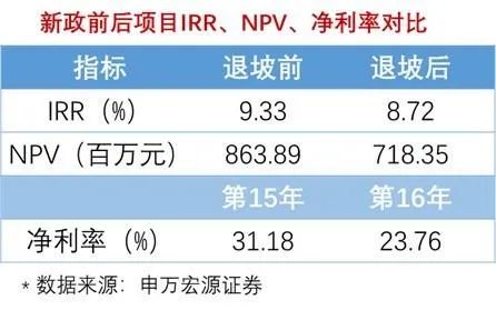 新政補貼退坡,導(dǎo)致內(nèi)部收益率和凈利率下降