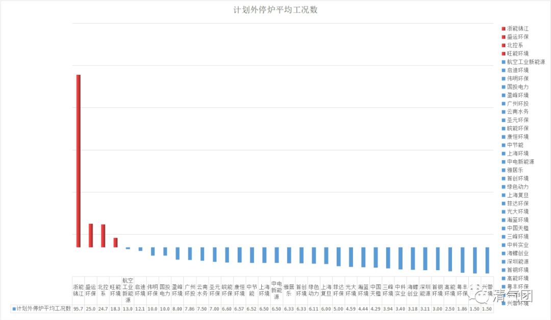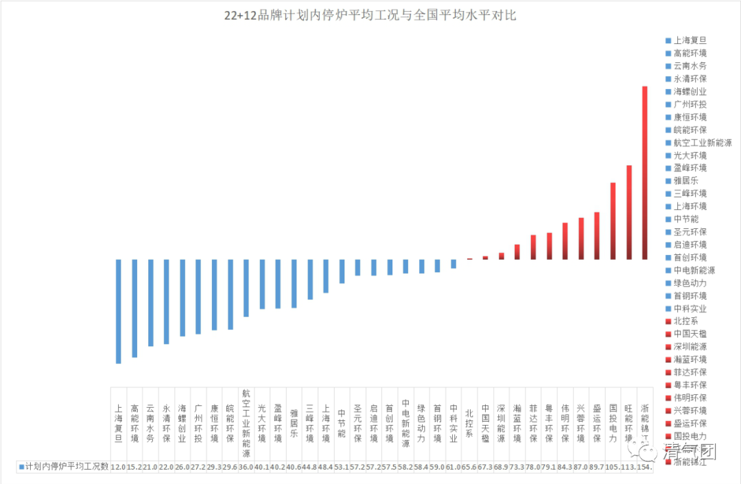 垃圾焚燒領(lǐng)域是近幾年環(huán)境監(jiān)管重點監(jiān)控的領(lǐng)域,也因為焚燒物料——垃圾的復(fù)雜多變、爐型的操作復(fù)雜、污染物成分和產(chǎn)生規(guī)律多樣,被認(rèn)為是較難被新入行者掌握的環(huán)境治理項目。“跨界”做焚燒到底行不行?我們選取了以下12個品牌為“跨界”品牌,并將它們的相關(guān)運維情況,與22家資深垃圾焚燒品牌開展了橫向比較。菲達(dá)環(huán)保,全名浙江菲達(dá)環(huán)??萍脊煞萦邢薰臼菄鴥?nèi)煙氣治理和相關(guān)裝備設(shè)備制造的知名企業(yè),總部在浙江。2015年中標(biāo)貴州省織金縣垃圾焚燒項目,2019年底投入運營。高能環(huán)境,全名北京高能時代環(huán)境技術(shù)股份有限公司,公司前身北京高能墊襯工程有限公司由中科院高能物理研究所高能墊襯工程處改制成立,是國內(nèi)土壤修復(fù)、工業(yè)廢渣廢水處理、垃圾填埋場運營和修復(fù)的龍頭企業(yè)。2015年開始進(jìn)軍垃圾焚燒行業(yè),目前在手運營項目四個,今年以來中標(biāo)多個垃圾焚燒項目。該公司在2020年環(huán)境五十強(qiáng)榜單中排名第21名。國投電力,國投電力控股股份有限公司,是國家開發(fā)投資集團(tuán)有限公司旗下電力上市企業(yè),2019年通過并購方式,開始運營位于貴州省六盤水市的貴州新源垃圾焚燒項目,同時還在2018年通過股權(quán)轉(zhuǎn)讓方式成為國內(nèi)知名固廢企業(yè)——瀚藍(lán)環(huán)境的第二大股東。中國航空工業(yè)新能源投資有限公司,前身系中國航空發(fā)動機(jī)總公司,是國家大型中央企業(yè)——中國航空工業(yè)集團(tuán)有限公司旗下成員單位,公司涵蓋清潔能源、市政環(huán)境、綜合能源服務(wù)三大業(yè)務(wù)版塊。2014年旗下四川南充垃圾焚燒項目正式運行,這也是中航系旗下目前唯一的垃圾焚燒項目。上海復(fù)旦水務(wù)工程技術(shù)有限公司,是由上海復(fù)旦大學(xué)和上海實業(yè)集團(tuán)成立的從事污水處理BOT項目高新技術(shù)開發(fā)和投資的專業(yè)公司,2016年從杭州新世紀(jì)手中低調(diào)并購了山東省日照市五蓮垃圾焚燒項目,控股90%,借此機(jī)會,上海復(fù)旦系資本也開始介入垃圾焚燒和固廢領(lǐng)域。2019年,該公司還與山東省莘縣住房和城鄉(xiāng)建設(shè)局簽署總投資約為人民幣6億元的垃圾焚燒發(fā)電項目BOT特許經(jīng)營協(xié)議。興蓉環(huán)境,在2020年環(huán)境五十強(qiáng)榜單中排名第23名。是成都環(huán)境投資集團(tuán)下轄的環(huán)保上市公司,主要從事自來水、污水和地下管網(wǎng)維護(hù)等業(yè)務(wù),是我國知名水環(huán)境領(lǐng)域運營企業(yè),旗下有兩家垃圾焚燒廠,均在成都市范圍內(nèi)。雅居樂,我國知名房地產(chǎn)企業(yè),2015年底進(jìn)軍環(huán)保領(lǐng)域,成立了雅居樂環(huán)保集團(tuán),通過收并購方式,運營了45個環(huán)保項目,其中多數(shù)為危廢項目,目前雅居樂擁有超350萬噸/年的危廢處理資質(zhì)和超1900萬立方米的安全填埋場庫容,位居行業(yè)前列。雅居樂目前在垃圾焚燒領(lǐng)域擁有三個項目,焚燒總量為7000噸每日。盈峰環(huán)境,由美的系資本通過并購方式,打造的龐大環(huán)境產(chǎn)業(yè)集團(tuán),是深交所上市企業(yè),目前是國內(nèi)智能環(huán)境裝備及服務(wù),尤其是環(huán)衛(wèi)設(shè)備的行業(yè)引領(lǐng)者,今年以來是環(huán)衛(wèi)市場中標(biāo)金額最高的企業(yè)。旗下通過并購方式,在手運營四家垃圾焚燒企業(yè)。該公司在2020年中國環(huán)境五十強(qiáng)榜單中排名第六。永清環(huán)保,是國內(nèi)知名的土壤環(huán)境治理和工業(yè)大氣治理企業(yè),也是深市A股企業(yè)。旗下在手運營兩家垃圾焚燒廠,并參股了長沙市生活垃圾焚燒廠。首鋼環(huán)境,全名首鋼環(huán)境產(chǎn)業(yè)有限公司(以下簡稱“首鋼環(huán)境”)為首鋼集團(tuán)全資子公司,主要有生活垃圾綜合處理、城市固廢資源化處置、工業(yè)污染場地土壤治理及生態(tài)修復(fù)三個主營業(yè)務(wù)。旗下在手運營魯家山垃圾焚燒廠。云南水務(wù),該公司在2020年中國環(huán)境五十強(qiáng)榜單中排名第13,是我國水務(wù)行業(yè)的龍頭企業(yè)。2015年,在香港聯(lián)交所正式掛牌交易,在海內(nèi)外擁有分、子公司近280家,污水項目151個,日處理總規(guī)模約為362萬噸,自來水項目66個,日處理總規(guī)模約為233萬噸。中科實業(yè),為中科院旗下中科集團(tuán)所屬專業(yè)從事生活垃圾焚燒、污泥干化等固體廢棄物處置技術(shù)研發(fā)和應(yīng)用的高科技工程公司。目前擁有五座垃圾焚燒廠。十二個品牌,均為行業(yè)內(nèi)或在公眾認(rèn)知較為知名的品牌,總共擁有在手垃圾焚燒廠27家,共43臺焚燒爐,除中科實業(yè)的汾陽項目,是兩臺循環(huán)流化床外,其余焚燒廠都是爐排爐;大部分投產(chǎn)時間都在2015年之后,爐齡比較新。這些“跨界”品牌目前的運營狀況如何,與老牌企業(yè)相比有何高下之分?由清氣團(tuán)、上海青悅、蕪湖生態(tài)中心三家機(jī)構(gòu)組成的垃圾焚燒ESG評價研究團(tuán)隊,開展了專題研究。此次研究依然以品牌的平均工況水平為衡量指標(biāo)——計劃內(nèi)停爐檢修工況平均天次;計劃外停爐檢修工況平均天次;計劃外故障檢修工