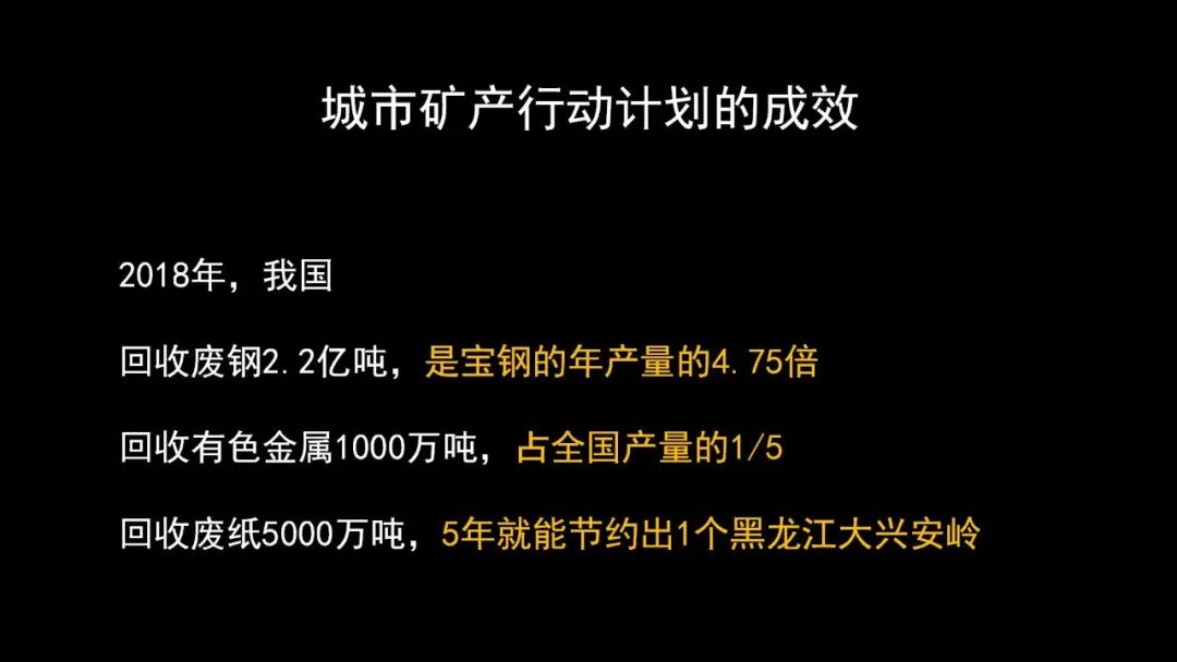 在今年新冠疫情以后,我們強調(diào)要雙循環(huán),既要國內(nèi)循環(huán),也要國際循環(huán),但是在資源這一塊,國外有卡我們脖子的37項技術(shù),也有石油鋼鐵這些資源對我們的卡脖子,如果我們能夠?qū)崿F(xiàn)自己的內(nèi)循環(huán),把我們的城市礦產(chǎn)變成資源,不就在資源上不受制于人了。