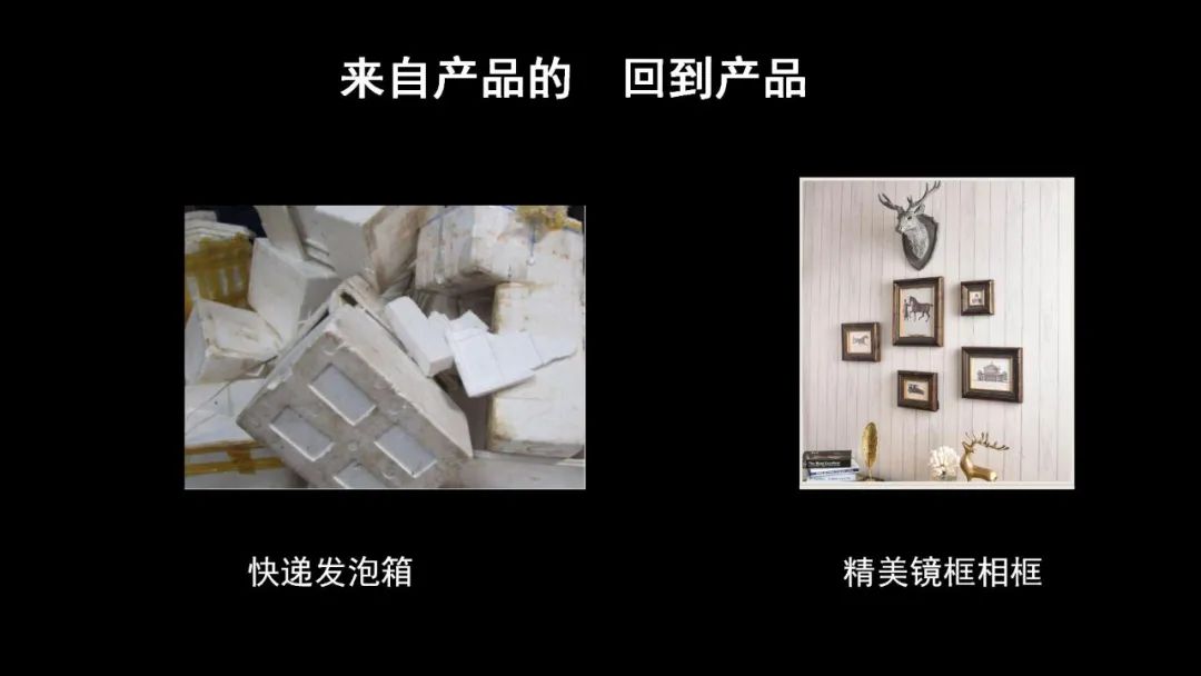 第二句話叫做:來自產(chǎn)品,要回到產(chǎn)品。你看我們從石油做成石油聚合物,做成發(fā)泡箱,我們把發(fā)泡箱按照物質(zhì)不滅定律,把它做成漂亮的鏡框、相框,繼續(xù)為大家服務(wù)。
