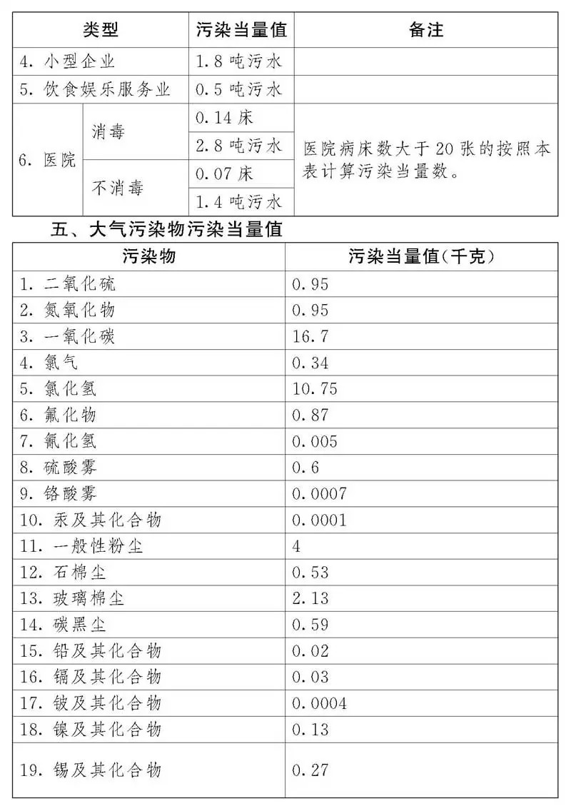 (一)污染當(dāng)量,是指根據(jù)污染物或者污染排放活動(dòng)對(duì)環(huán)境的有害程度以及處理的技術(shù)經(jīng)濟(jì)性,衡量不同污染物對(duì)環(huán)境污染的綜合性指標(biāo)或者計(jì)量單位。同一介質(zhì)相同污染當(dāng)量的不同污染物,其污染程度基本相當(dāng)。
