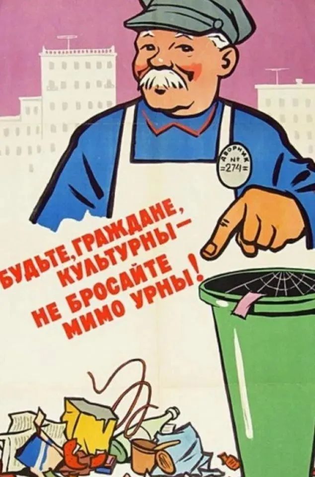 圖片說明:蘇聯(lián)海報,文字“Будьте , граждане , культурны Не бросайте миио урны ”,即“勞駕,居民,這是有文化的體現(xiàn):不(把垃圾)扔到垃圾箱外”。而日本從60年代以來,才開始開展廢棄物回收利用,應(yīng)該是在愿景理念和一些具體原則辦法上,借鑒了當時的超級大國蘇聯(lián)。不過,日本在具體實踐中,又“青出于藍而勝于藍”,在廢棄物回收領(lǐng)域的深度和廣度方面不斷擴展,成就斐然,支持了日本工業(yè)和整個經(jīng)濟的發(fā)達,同時保護了生態(tài)環(huán)境,實現(xiàn)了綠色節(jié)能可持續(xù)發(fā)展,領(lǐng)先于世界。
