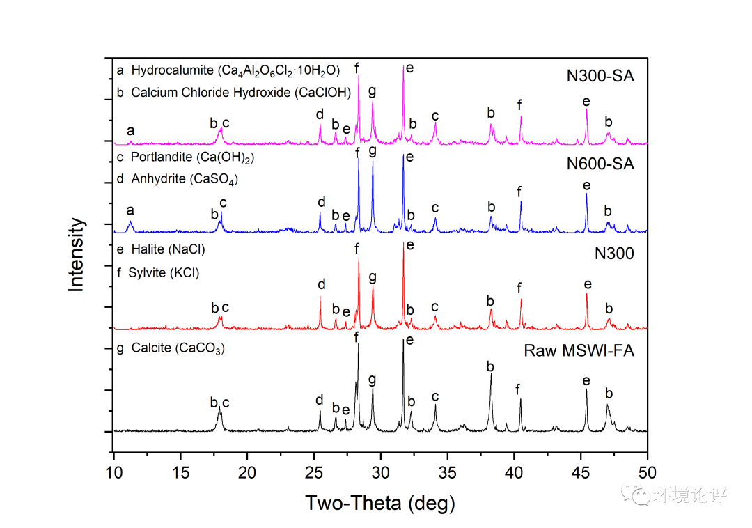 將n-Al/CaO材料應(yīng)用于生活垃圾焚燒飛灰的固化穩(wěn)定化過程中,以10%質(zhì)量比的添加量即可獲得較好的處理效果。在實(shí)驗(yàn)條件下,重金屬的浸出濃度均可低于填埋場入場標(biāo)準(zhǔn),固定率達(dá)到99.9%,以N600SA實(shí)驗(yàn)組為最佳。在此過程中反應(yīng)體系中新生成水鋁鈣石類礦物,強(qiáng)化重金屬固定。經(jīng)n-Al/CaO固化穩(wěn)定化后氯苯類物質(zhì)的總含量顯著降低,82.43%的六氯苯得到降解去除,未產(chǎn)生其他氯苯類物質(zhì)的積累。