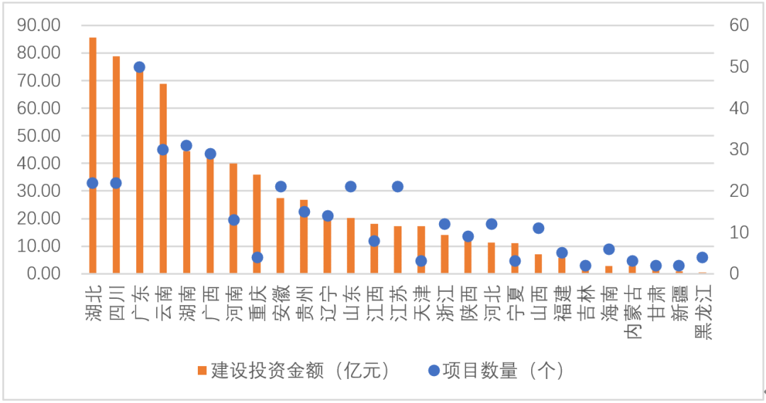 1月,全國(港澳臺(tái)未統(tǒng)計(jì))共有27個(gè)省(區(qū)、市)啟動(dòng)水務(wù)項(xiàng)目。從建設(shè)投資金額來看,位列前3的省份為湖北、四川、廣東,均在75億元以上,其中,湖北建設(shè)投資金額超85億元;從項(xiàng)目數(shù)量來看,位列前3的省份為廣東、湖南、云南3省,均超過30個(gè)(含30個(gè))。