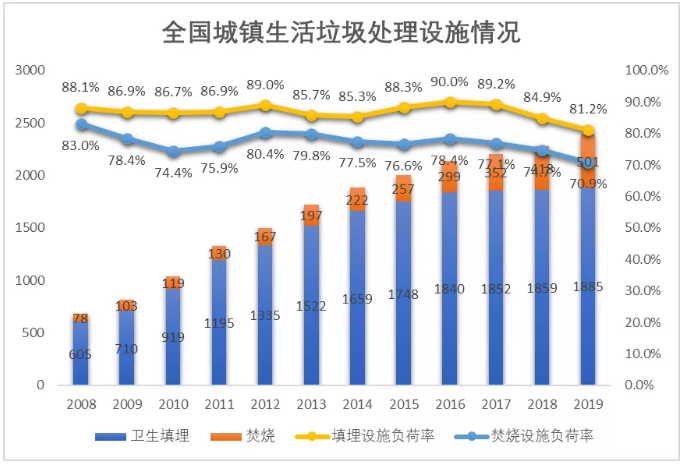 由于具有無害化、減量化和資源化等特點(diǎn),垃圾焚燒發(fā)展迅速,垃圾焚燒發(fā)電廠數(shù)量以及垃圾處理量占比都呈持續(xù)上升趨勢,行業(yè)發(fā)展前景廣闊。已投入運(yùn)營的生活垃圾焚燒廠數(shù)量則由2008年的78座增長至2019年的501座,平均每座生活垃圾焚燒廠的處理能力由683噸/日增長至1041噸/日,體現(xiàn)出我國生活垃圾焚燒處理設(shè)施逐漸大型化、成熟化、穩(wěn)定化的基本特征。而焚燒廠的運(yùn)營負(fù)荷率始終保持在70~80%的較健康水平。部分生活垃圾焚燒廠未能達(dá)到滿負(fù)荷運(yùn)營,其中原因較為復(fù)雜,主要可分為以下兩類:入廠垃圾量達(dá)不到設(shè)計(jì)處理能力、處理設(shè)施穩(wěn)定連續(xù)運(yùn)營能力不足。生活垃圾焚燒廠運(yùn)營社會資本應(yīng)注意其中風(fēng)險(xiǎn)。