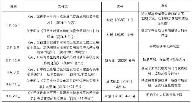 2020年以來,可再生能源發(fā)電補(bǔ)貼政策迎來系統(tǒng)改革,對垃圾焚燒行業(yè)發(fā)展造成一定影響。