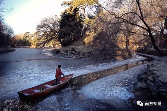 △在冰凍的人工湖面下,可以看到成片的垃圾,拍攝于河北邢臺。