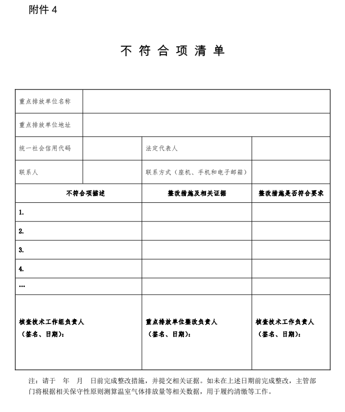 -提出《不符合項(xiàng)清單》(見(jiàn)附件4),交給重點(diǎn)排放單位整改,驗(yàn)證整改是否完成;-出具《核查結(jié)論》;