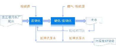 中國市政工程中南設計研究總院有限公司根據(jù)自身雄厚的技術實力,提出采用硝化+深度反硝化脫氮主體工藝處理南湖本體湖水和采用前置反硝化+硝化脫氮主體工藝處理龍王嘴污水處理廠尾水,為南湖補水及增強水動力循環(huán)的工藝路線。