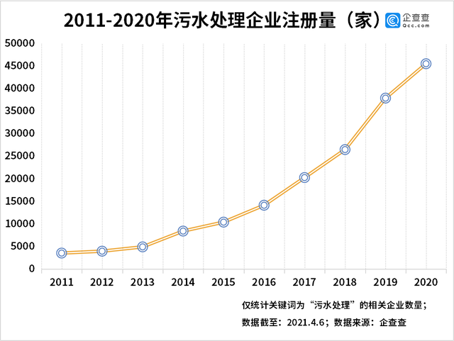 原標(biāo)題:企查查數(shù)據(jù):2020年我國污水處理相關(guān)企業(yè)注冊(cè)量同比增長20%