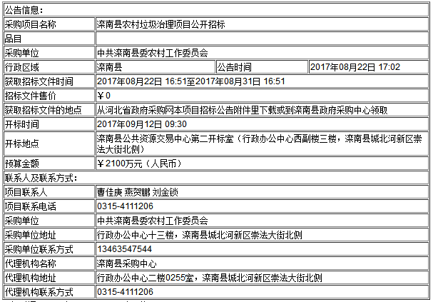 項(xiàng)目名稱:灤南縣農(nóng)村垃圾治理項(xiàng)目公開招標(biāo)