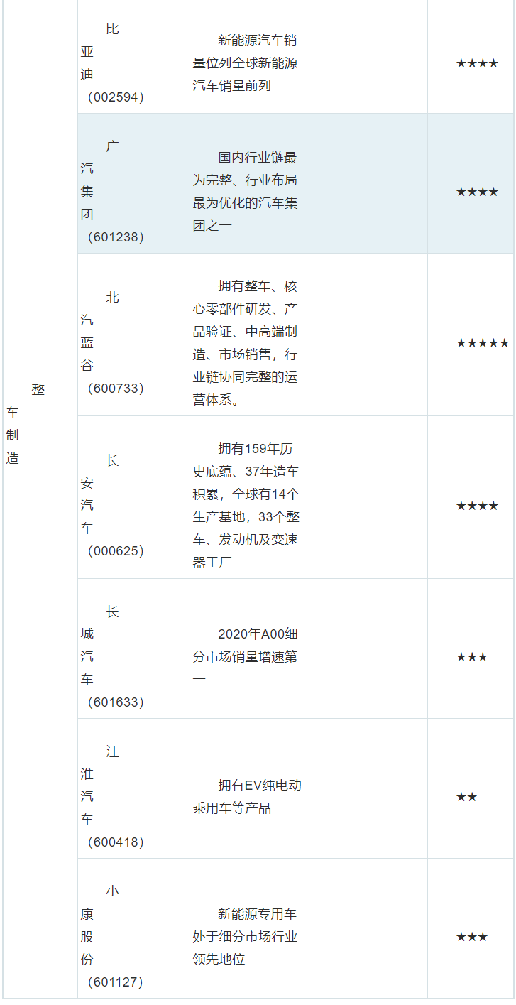 當(dāng)前,由于科技和行業(yè)變革,新能源汽車已經(jīng)成為汽車行業(yè)轉(zhuǎn)型升級的中堅力量。目前,我國新能源汽車行業(yè)的上市公司數(shù)量較多,分布在各行業(yè)鏈環(huán)節(jié)。其中,涉及新能源汽車整車制造上市公司包括:上汽集團(tuán)、廣汽集團(tuán)、比亞迪、北汽藍(lán)谷、長安汽車等。