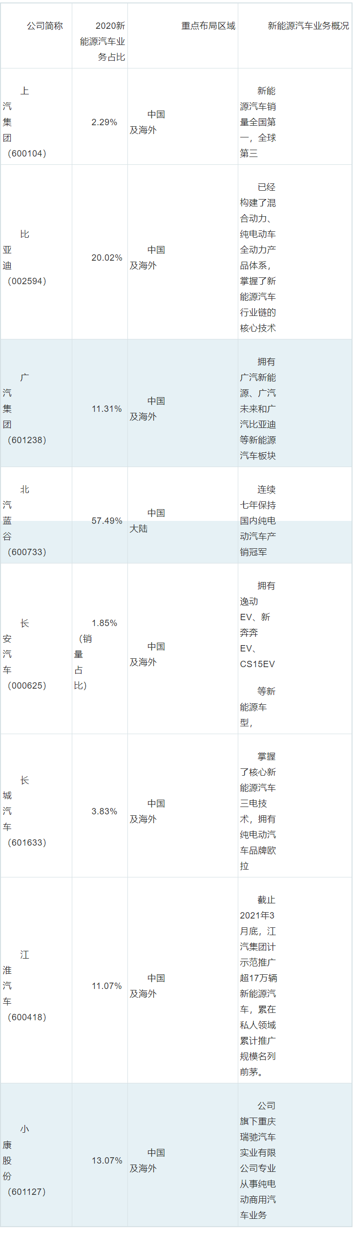 2、新能源汽車行業(yè)上市公司業(yè)務(wù)布局對比