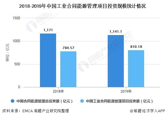 經(jīng)推算后得出2018年中國工業(yè)合同能源管理項目投資額為784.57億元;2019年中國工業(yè)合同能源管理項目投資額為810.18億元,在節(jié)能行業(yè)總投資額有所下降的情況下,工業(yè)節(jié)能服務(wù)產(chǎn)業(yè)仍然同比上年增長3.26%。