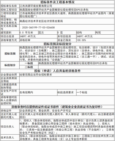 原標(biāo)題:江西南昌固廢處理循環(huán)經(jīng)濟(jì)產(chǎn)業(yè)園餐廚垃圾處理項(xiàng)目EPC總承包招標(biāo)公告