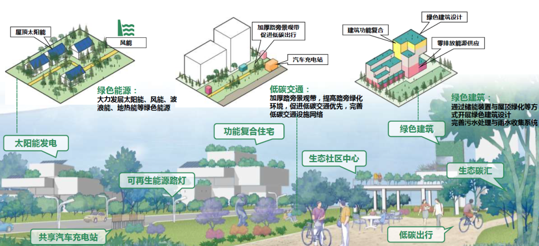 通過發(fā)展綠色生態(tài)技術(shù),降低社區(qū)碳排放,提高社區(qū)固碳能力,建設(shè)生態(tài)零碳社區(qū)。