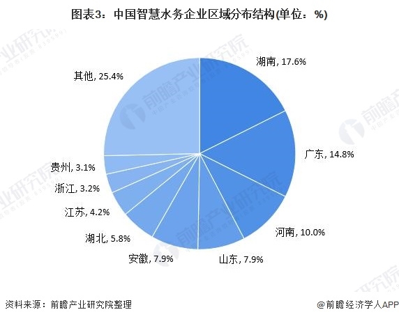 截至2021年6月9日,我國智慧水務行業(yè)企業(yè)(經(jīng)營范圍包含智慧水務的存續(xù)在業(yè)企業(yè))在湖南省的占比最大為17.6%,其次是廣東省,占比為14.8%。