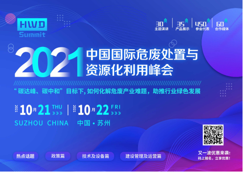 至此,2021中國(guó)國(guó)國(guó)際危廢處置與資源化利用峰會(huì)將于2021年10月21-22日在蘇州舉辦,會(huì)議以“ “碳達(dá)峰、碳中和”目標(biāo)下, 如何化解危廢產(chǎn)業(yè)難題,助推行業(yè)綠色發(fā)展 ”為主題,將聚焦十四五產(chǎn)業(yè)規(guī)劃,探索危廢行業(yè)技術(shù)與應(yīng)用創(chuàng)新,助力國(guó)內(nèi)外企業(yè)加快市場(chǎng)布局,促進(jìn)產(chǎn)業(yè)各方的交流合作!屆時(shí)歡迎相關(guān)企業(yè)及行業(yè)專家、學(xué)者踴躍參加!