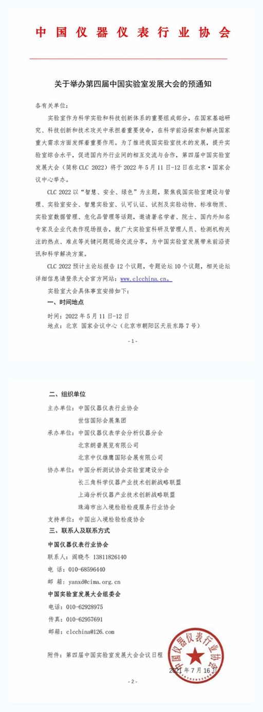 第四屆中國實(shí)驗(yàn)室發(fā)展大會(huì)(以下簡稱CLC 2022)將于2022年5月11日-12日在北京·國家會(huì)議中心舉辦,現(xiàn)誠摯邀請(qǐng)有關(guān)單位和相關(guān)工作者及社會(huì)各界代表踴躍參加本次大會(huì),共同推動(dòng)我國實(shí)驗(yàn)室的技術(shù)創(chuàng)新和高水平發(fā)展。