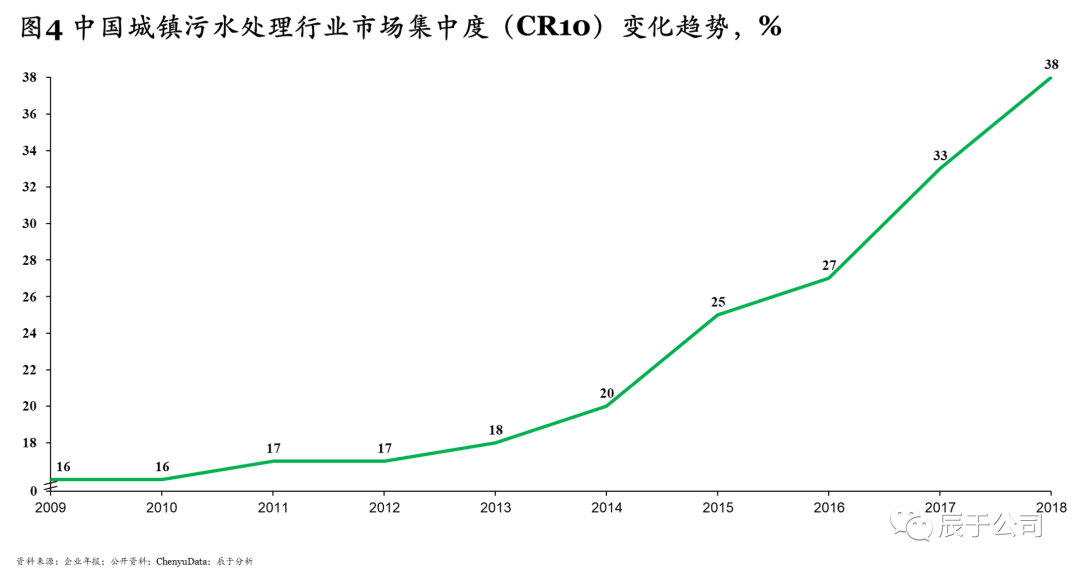 可以預(yù)見的是,運(yùn)營經(jīng)驗(yàn)豐富、歷史業(yè)績強(qiáng),管網(wǎng)運(yùn)維與污染物處理能力強(qiáng)、可持續(xù)運(yùn)維能力強(qiáng)的企業(yè)將脫穎而出,通過更大范圍、更高層次、更大金額的并購重組推動(dòng)行業(yè)集中度持續(xù)提升(見圖4)。