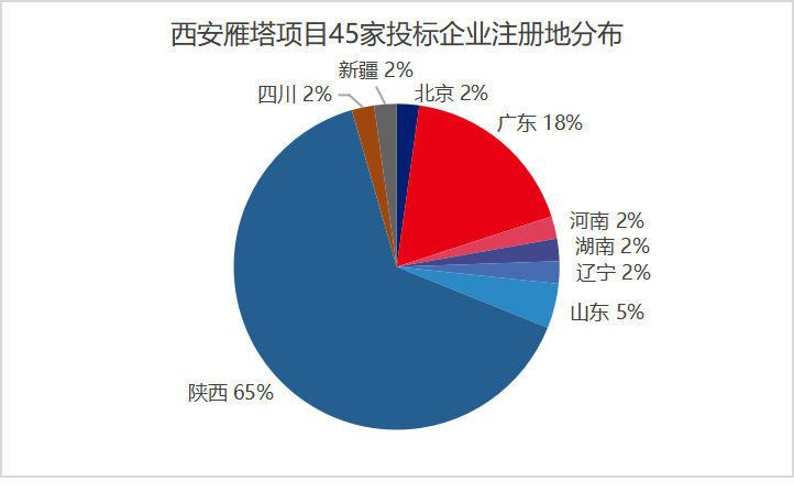 西安市雁塔區(qū)城市道路市場化清掃保潔項目共有來自9個省市區(qū)的45家企業(yè)參與投標(biāo)報價,8個標(biāo)段成交總額1.8852億元/年,服務(wù)期3年,合同金額5.6557億元。