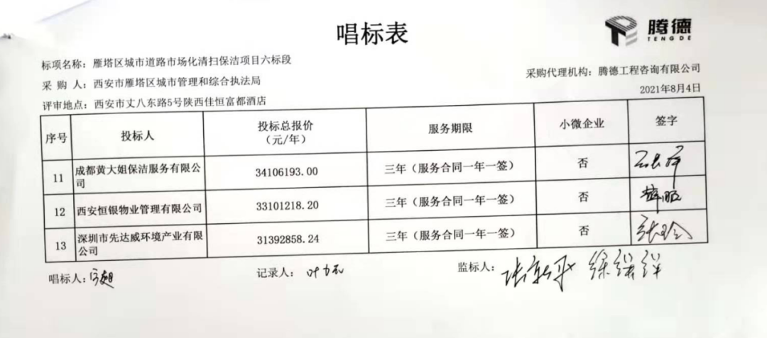 陜西省政府采購網(wǎng)消息,8月5日,西安市雁塔區(qū)城市道路市場化清掃保潔項目開標(biāo)再現(xiàn)大場面。