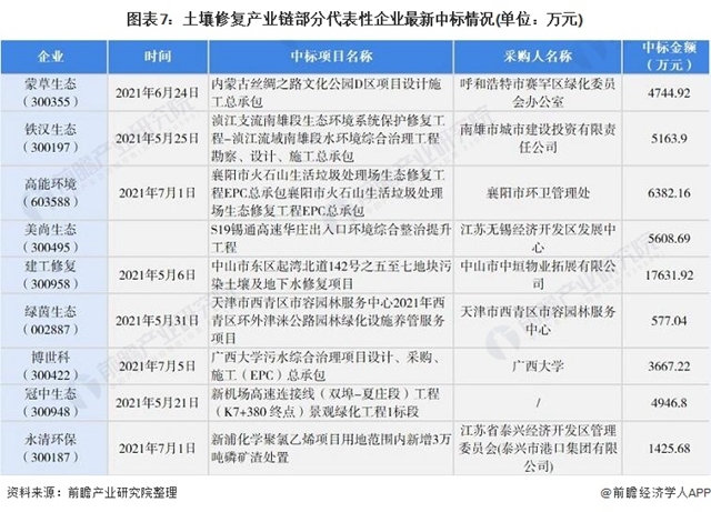 土壤修復(fù)產(chǎn)業(yè)代表性企業(yè)最新中標情況:中標金額差距較大