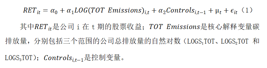 碳溢價(jià)的一個(gè)可能解釋是機(jī)構(gòu)投資者實(shí)施可持續(xù)政策而對高碳排放股票進(jìn)行撤資和排除性篩選,導(dǎo)致投資組合的多元化不足?;貧w模型為: