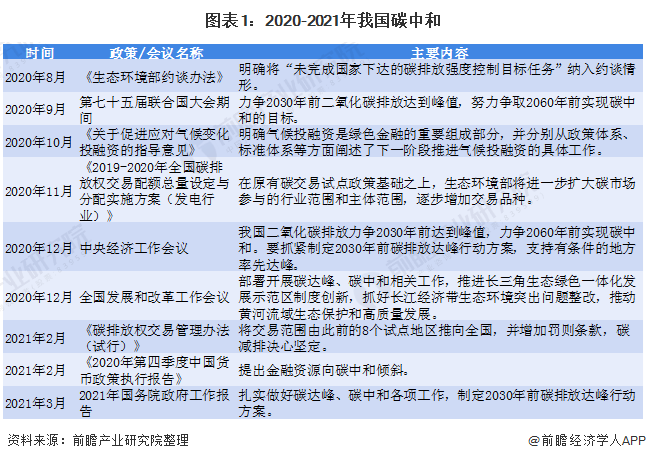 碳中和指通過(guò)植樹(shù)造林、節(jié)能減排等方法增加碳吸收量,將碳吸收量與碳排放量抵消,實(shí)現(xiàn)碳中和。碳達(dá)峰就是二氧化碳的排放不再增長(zhǎng),達(dá)到峰值之后再慢慢減下去,是碳中和前必須經(jīng)過(guò)的階段。2020年9月,在第75屆聯(lián)合國(guó)大會(huì)上,我國(guó)提出二氧化碳排放力爭(zhēng)在2030年前達(dá)峰,努力爭(zhēng)取2060年實(shí)現(xiàn)碳中和。2020年12月,中央經(jīng)濟(jì)工作會(huì)議將“做好碳達(dá)峰、碳中和工作”列為2021年的重點(diǎn)任務(wù)之一。2021年3月,政府工作報(bào)告中指出將制定2030年前碳排放達(dá)峰行動(dòng)方案,推進(jìn)優(yōu)化產(chǎn)業(yè)結(jié)構(gòu)和能源結(jié)構(gòu),大力發(fā)展新能源。
