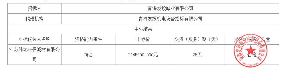 青海發(fā)投堿業(yè)有限公司熱電車(chē)間2#、3#鍋爐布袋除塵器更換項(xiàng)目(設(shè)備、材料、貨物(技術(shù)服務(wù)))中標(biāo)結(jié)果公告