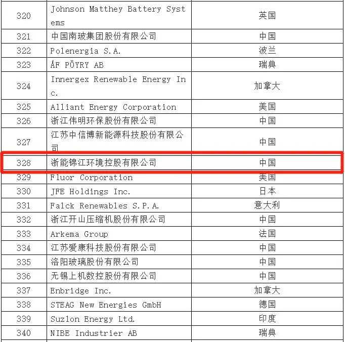 全球新能源企業(yè)500強(qiáng)出爐!浙能錦江環(huán)境名列328!