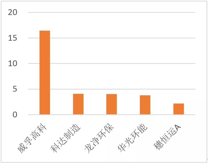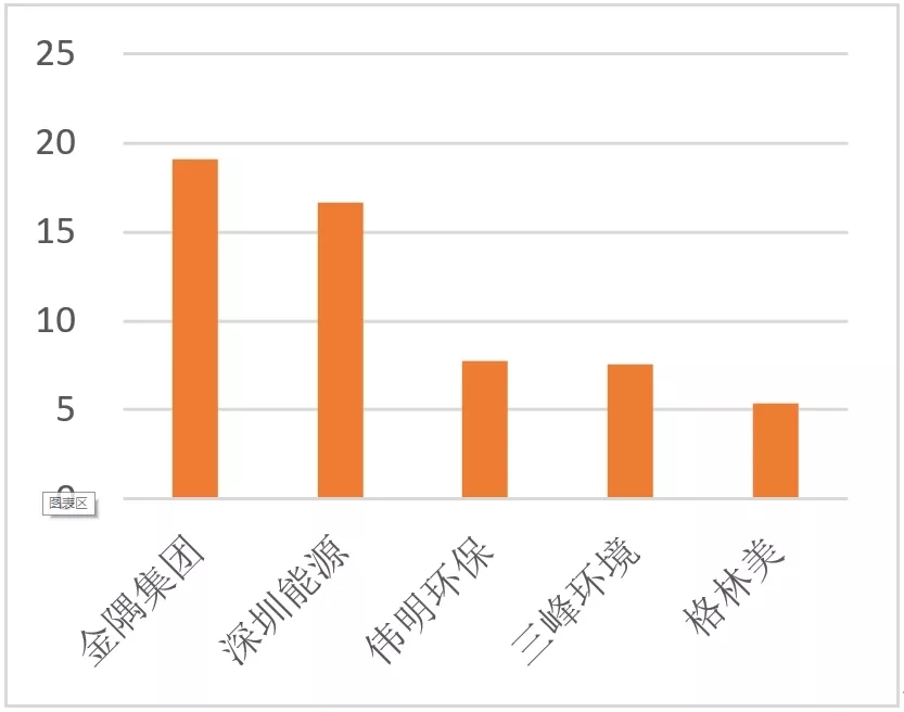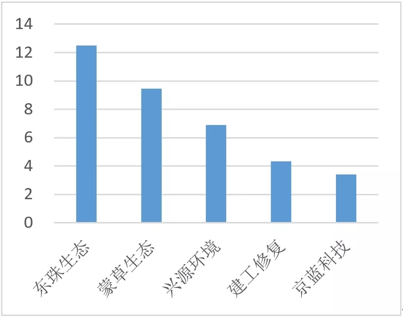 上半年環(huán)境修復領域凈利潤TOP5(單位:億元)