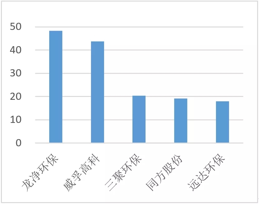 上半年水務領域環(huán)保營收TOP5(單位:億元)